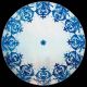 kunstvoll verschlungenem blauen Blumen-Motiv.